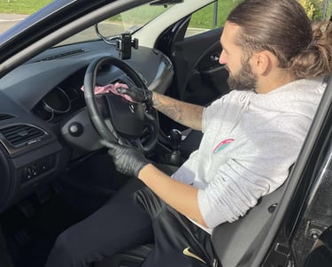 Aspiration de l'habitacle et du coffre, nettoyage du tableau de bord, nettoyage des plastiques, nettoyage des vitres intérieures, désinfection complète à la vapeur, parfum d'ambiance au choix.